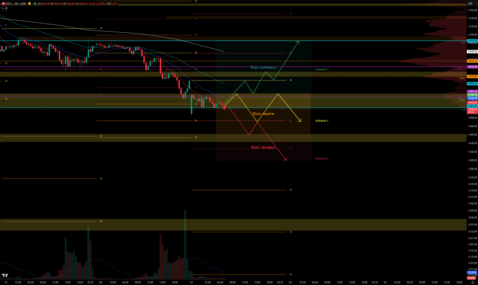 Scenario 1 🟡: Upon rejection at 6500, the price could consolidate between this level and the 6525-6558 resistance zone.