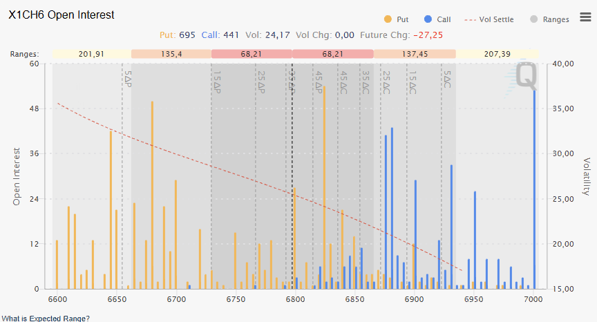 On the options board, we can see that investors are hedging to the downside, with a majority of puts.