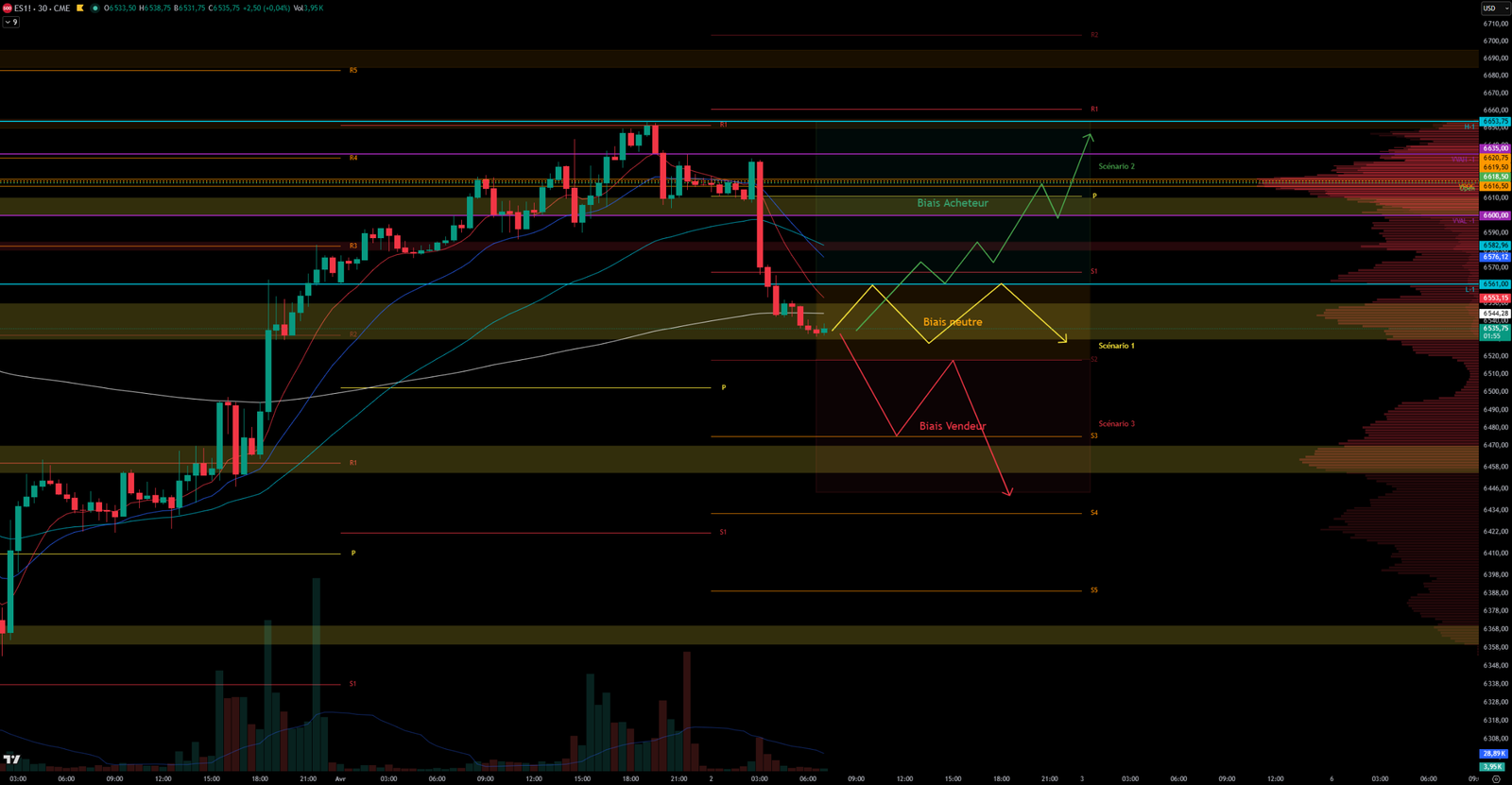Scenario 3 🔴: Upon filling Tuesday’s Single Print at 6500-6530, the price could target the 6440-6460 support zone.