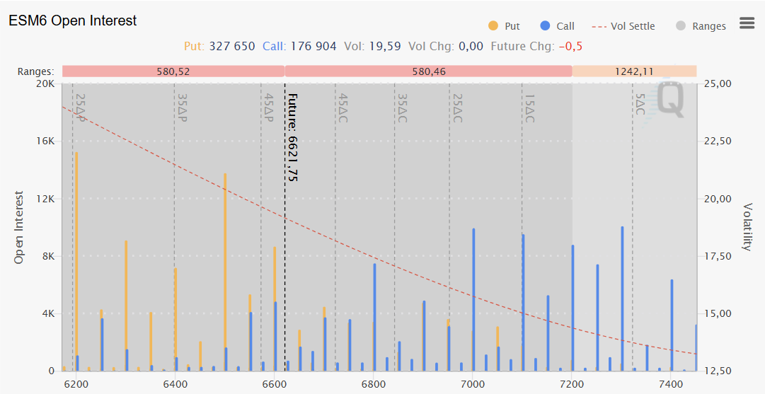 Regarding options, we have large put levels at 6500, 6550, and 6600, and call levels at 6600, 6800, and 7000.