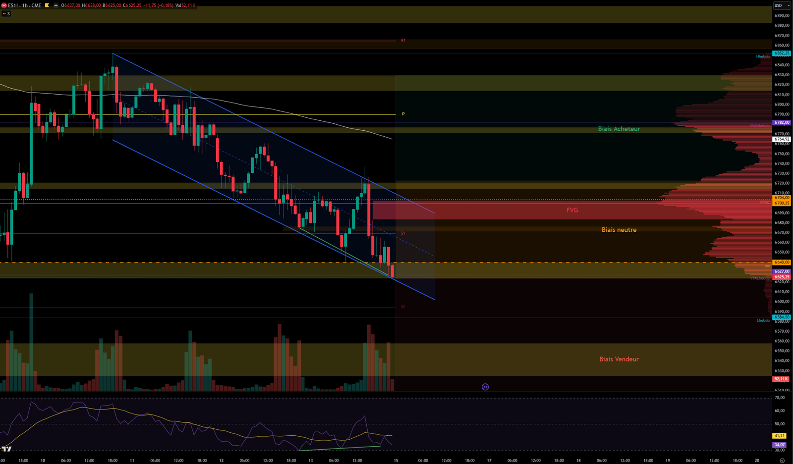 This bounce could be confirmed by the bullish divergence present on the 1h chart if the latter is validated by a break of the neutrality zone. However, it will take significant strength to bounce, as the S&P 500 created a Fair Value Gap between 6683 and 6700 during its fall. This level also corresponds to the weekly VPOC and a volume low further up.