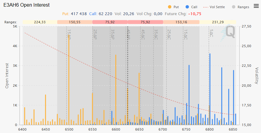 Tomorrow’s open will provide a major indication of the upcoming trend. Regarding option zones, we can observe that investors are mostly hedging for a decline with large put zones at the 6600 and 6500 levels. Calls are situated around the 6800 levels.