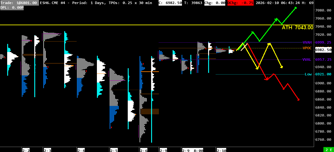 • 6993-7000 (Zone de résistance + VVAH-1 6999.25 + Plus haut de la veille 7000.50)